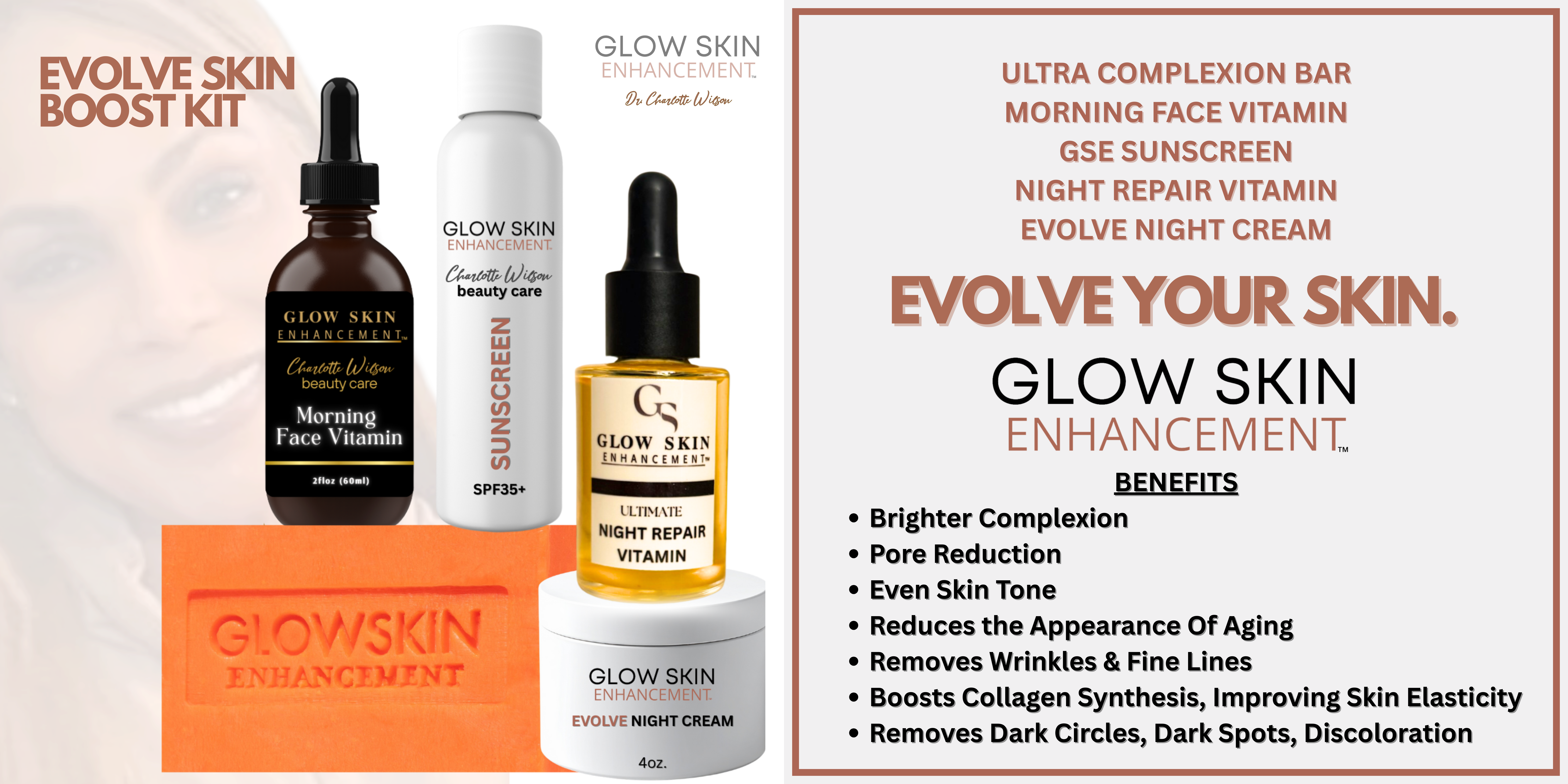 Glow Skin Enhancement THIS IS A CONFIDENCE BOOSTER FOR ALL WOMEN. THIS KIT MAKES YOUR MOST INTIMATE AREAS MORE BEAUTIFUL. ENJOY THIS SPECIAL GIFT FOR 25% OFF UNTIL VALENTINE'S DAY. -DR. CHARLOTTE WILSON-
